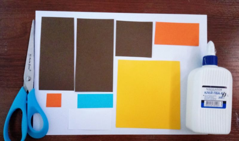- Парчета цветна хартия (черна, кафява, тъмно сива и бяла).