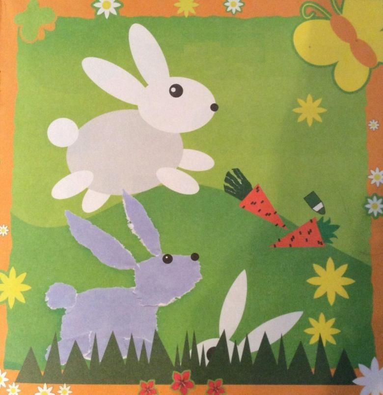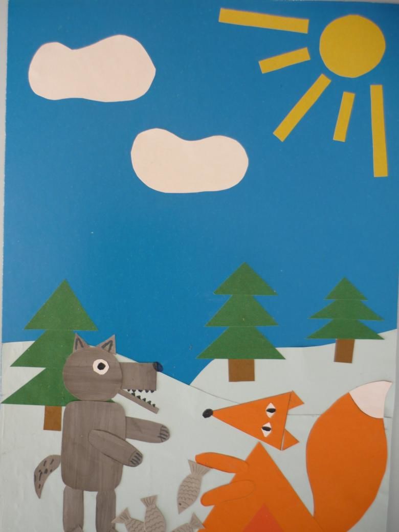 Всички елементи трябва да бъдат изрязани от хартия, преди детето да започне. На детето трябва да се покаже рисунката на готовата апликация и след като назове фигурите върху нея, да се покани да избере подобни форми от няколко различни. Обърнете внимание на детето върху значението на цветовете.