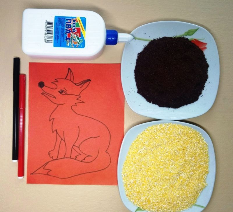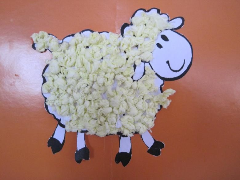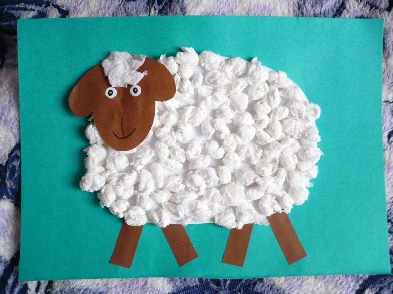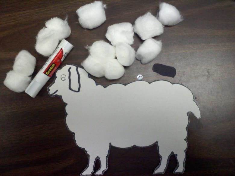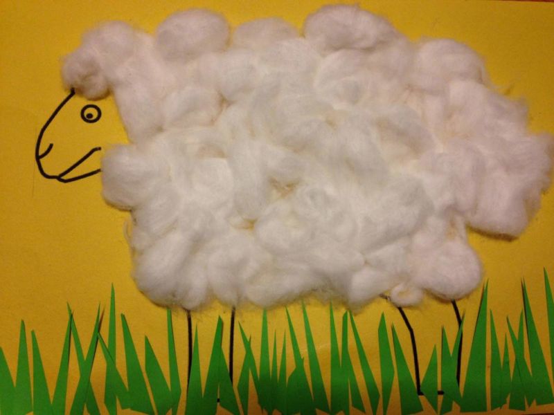 Памучната вълна е добър материал за приложения, който перфектно възпроизвежда животинска козина. За да работят с него, децата трябва да нарисуват контура на животно.