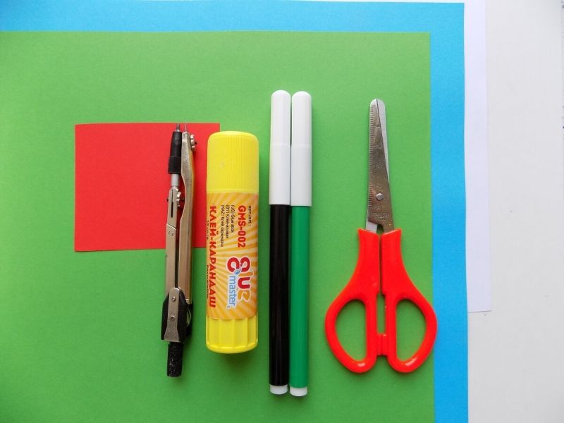 - цветна хартия в различни цветове,