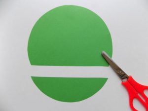 За да направите дракон, ще ви трябва зелена и жълта хартия. С помощта на шаблон нарисувайте 4 големи кръга върху червена хартия и ги изрежете. След това сгънете всеки кръг наполовина и ги изрежете. Сгънете всяка половина на две, като цветната страна е обърната навътре.