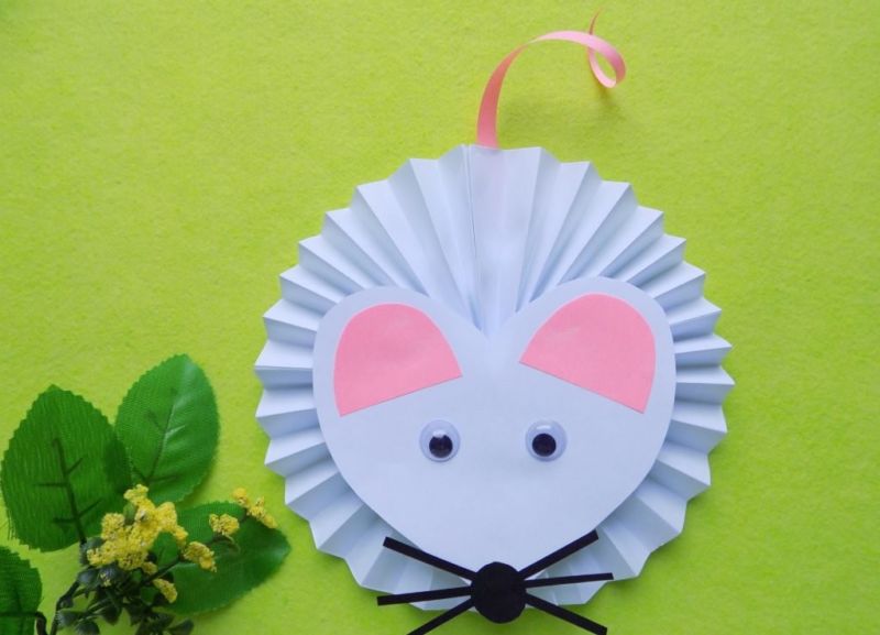 - Кръг от акордеон. Залепени заедно два вентилатора, получаваме кръг. Тя може да служи като тяло на прасе, грива на лъв или муцуна за апликации на всяко друго животно. Липсващите части на тялото трябва да бъдат залепени към него.
