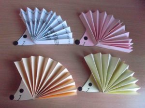 - Почитател на акордеона. Ако залепите акордеон от едната страна, ще получите ветрило. Това е най-лесният начин за изработване на таралеж. Хартиеното ветрило ще представлява тяло с игли. В основата му е необходимо да се залепи полуовал от хартия с нарисувана муцуна и вече към него отдолу - два крака.
