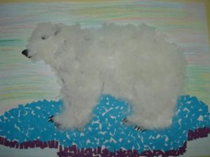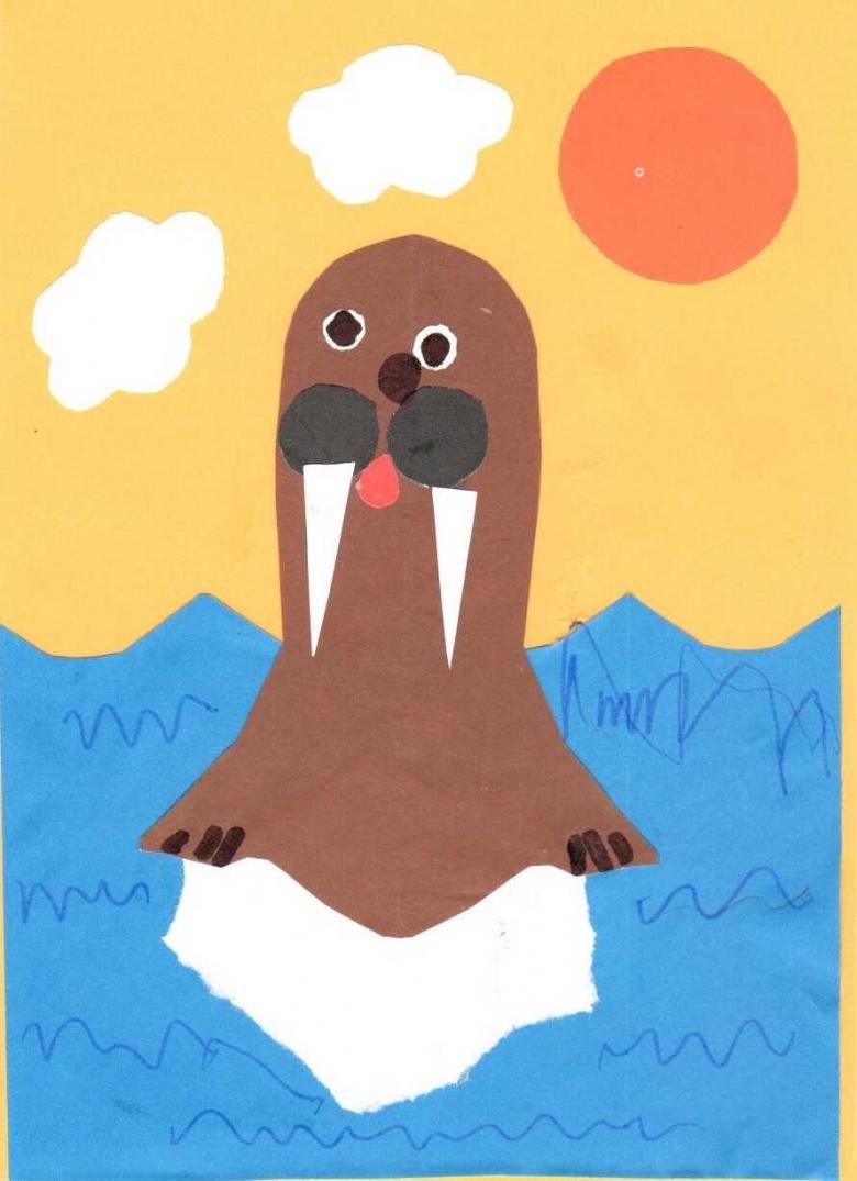 - Заявка от ленти. При този метод трябва да залепите тялото на животното от тесни ленти като фенер. След това залепете към него хартиена глава, крака и опашка. Можете да направите цяла изложба с този вид апликации в по-голямата група - например на тема "Животните на Севера". Децата могат да бъдат помолени да направят едно от следните животни: елен, вълк, бяла мечка или бухал.