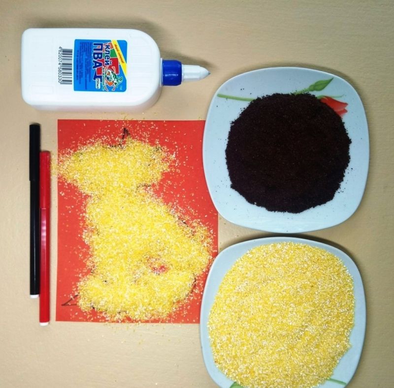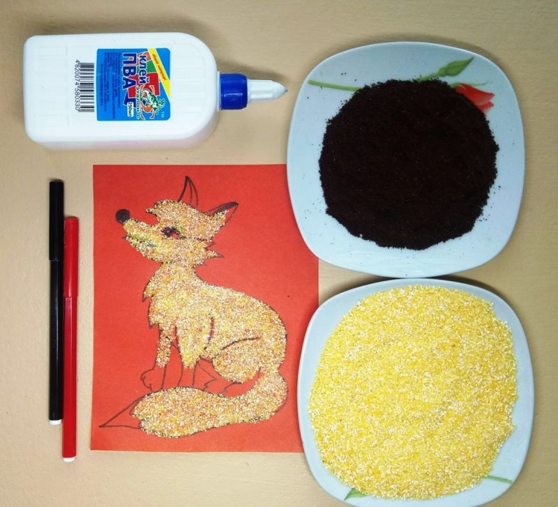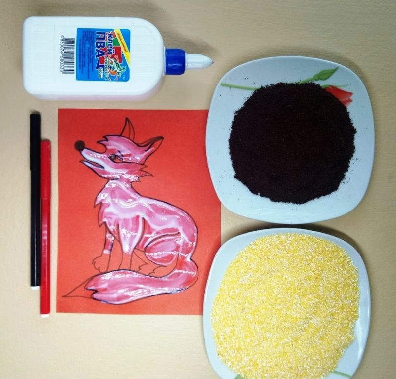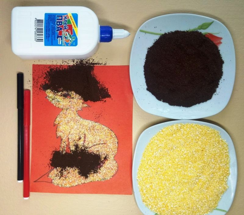 След това обяснете на детето реда, в който трябва да се направи апликацията, и му покажете как да нанесе лепилото. Започнете с животно, което е познато на детето, например куче, котка или птица.
