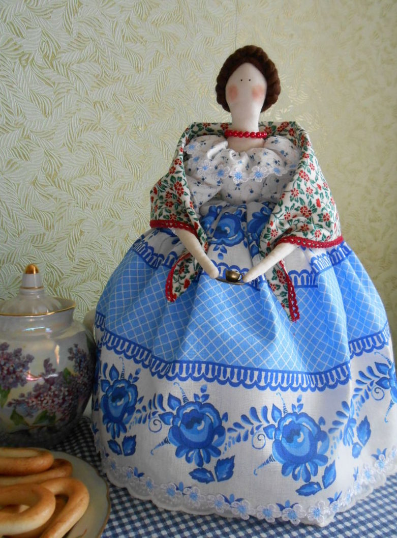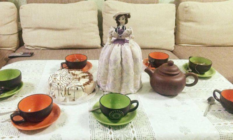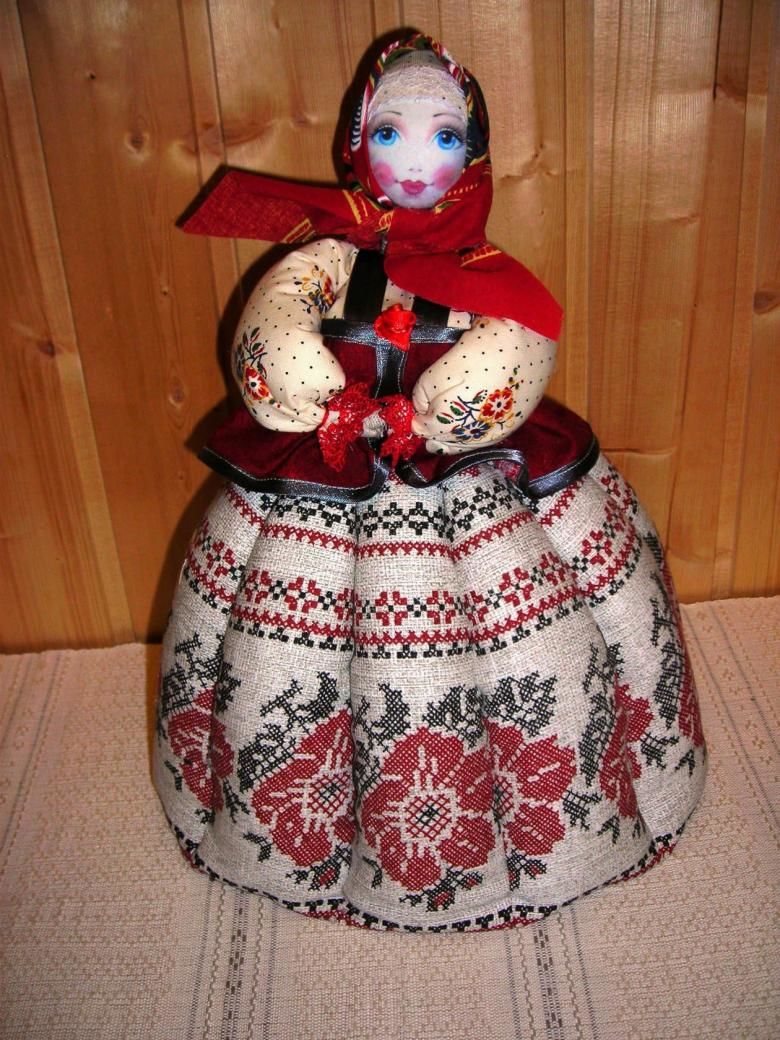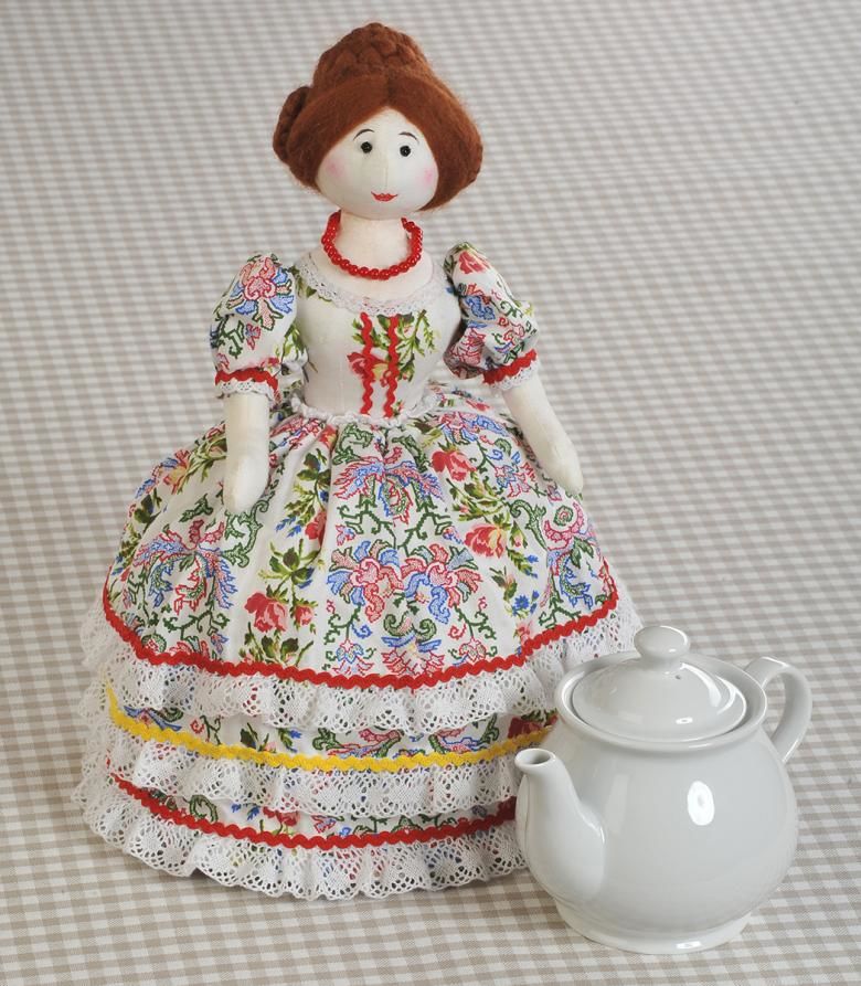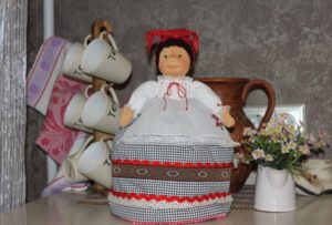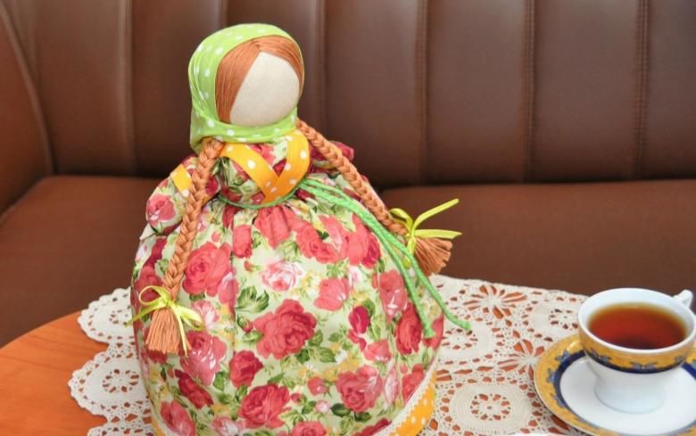 Традиционната кукла е обикновена затоплена ватирана шапка. Той е изрязан с размера на чайник.