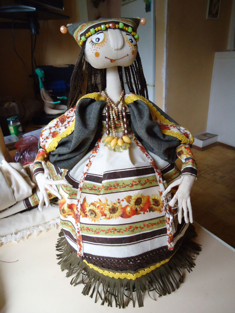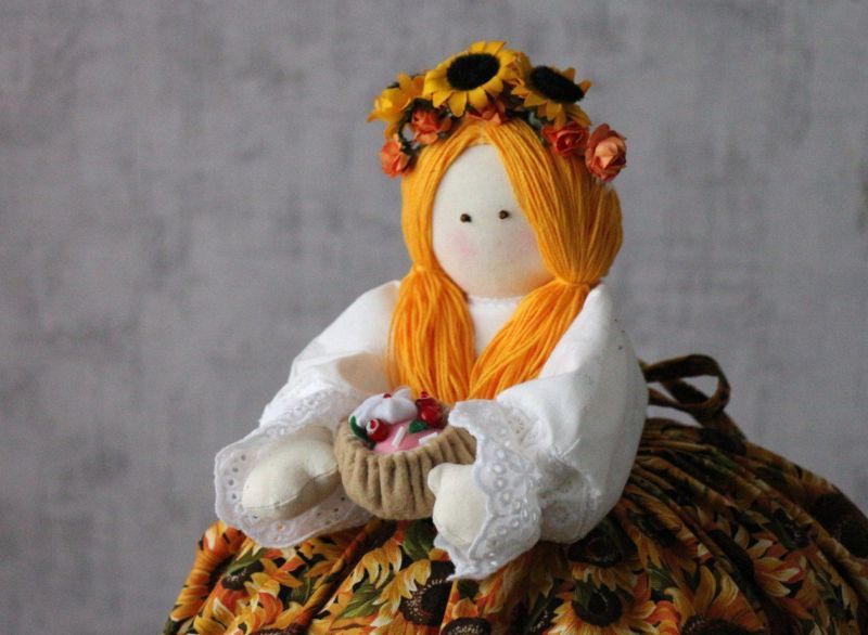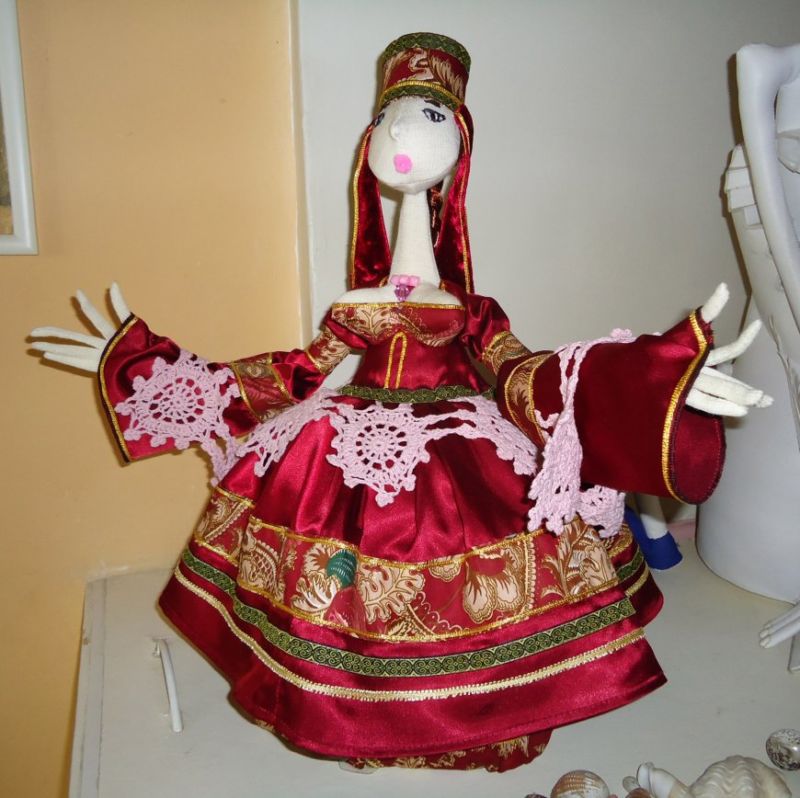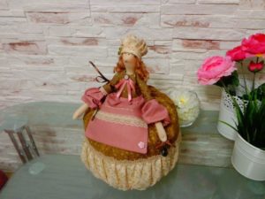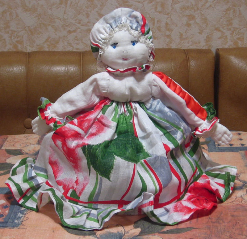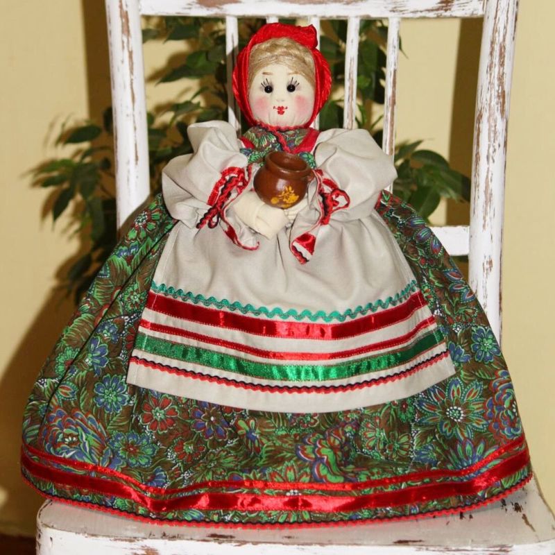 Традиционната кукла е обикновена затоплена ватирана шапка. Той е изрязан с размера на чайник.