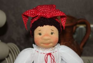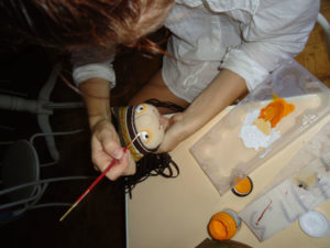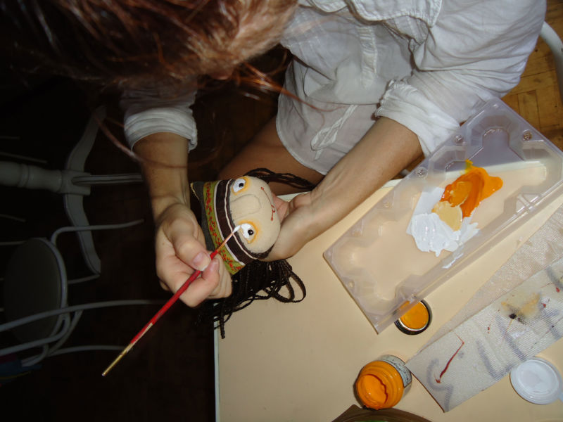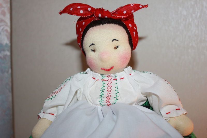 - Главата е прикрепена към тялото. Изрисувано лице. Косата се изработва от прежда или вълна за плъстене и се залепва за главата.