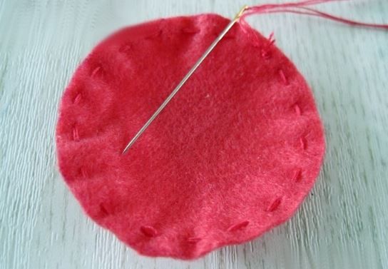- Изберете главата. Оформете лицето на куклата с дълга игла и конец.