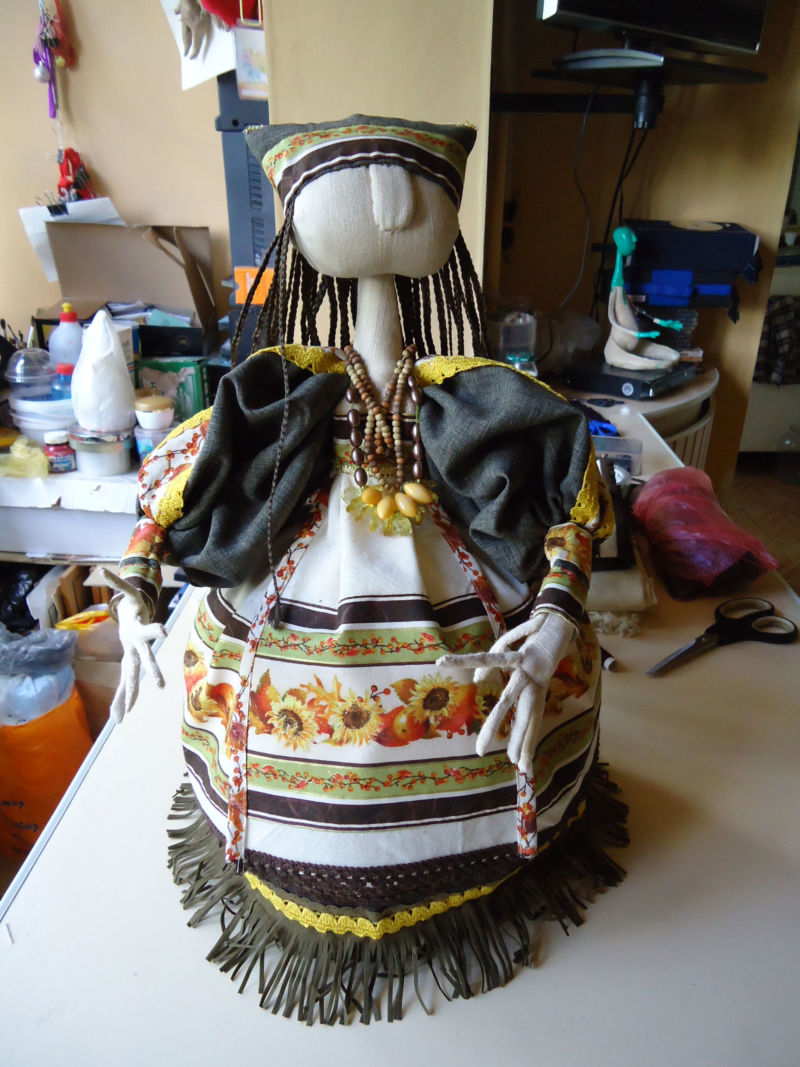Ушивате берегинята по същия начин, както традиционната баба. Основната разлика е, че лицето ѝ не е изрисувано. Декоративните елементи са минимални. Изборът на цветове и шарки е направен в съответствие със славянските традиции.