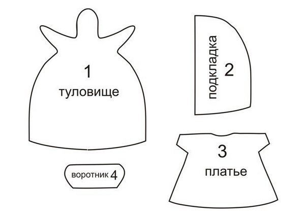 - Тялото, главата и ръцете на куклата се изрязват с помощта на шаблони с надбавки за шев. Напълнете елементите с плънка.