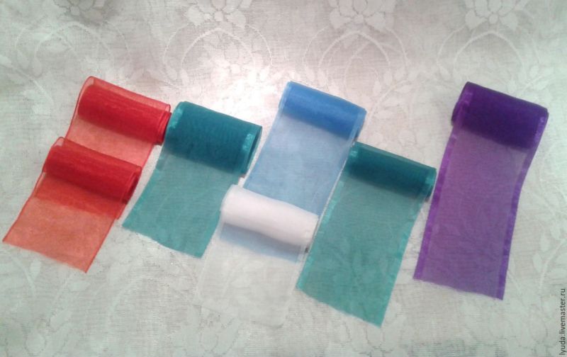 Цветовете могат да се комбинират по ваш вкус. Например създайте едноцветна синя панделка или комбинирайте няколко цвята в едно творение.