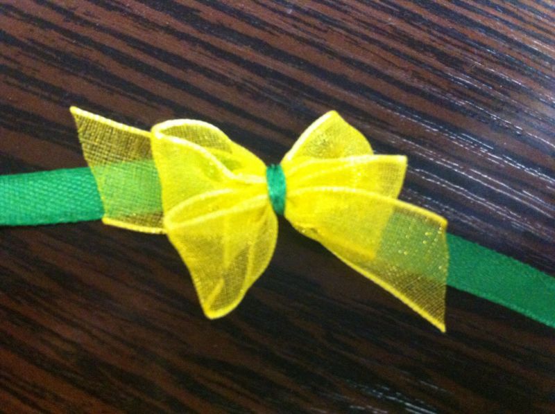 - Украсете панделката с мънисто в центъра.