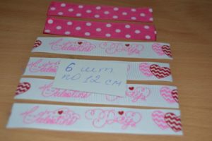 - Червена, бяла и розова панделка (8х150 см всяка);