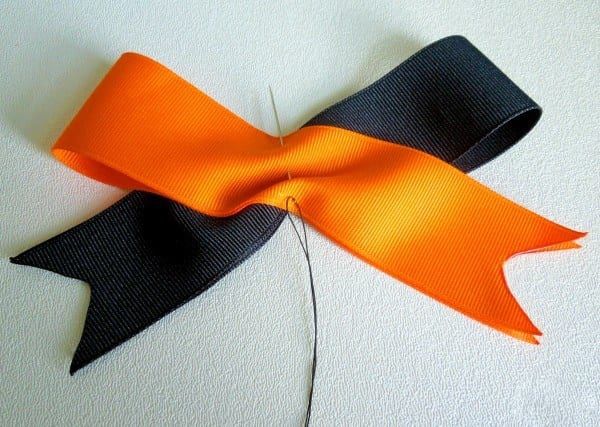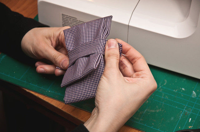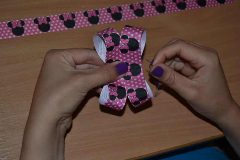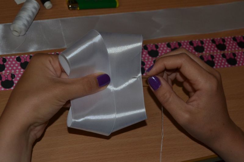 - Поставете краищата на панделката един върху друг и ги зашийте равномерно от долната страна.