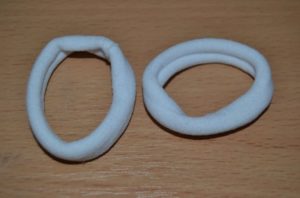 - Прикрепете гумената лента към филца с горещо лепило.