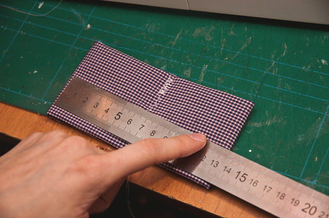 - Прегънете 7-сантиметровото парче 3 пъти, като закрепите краищата му с лепило.