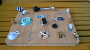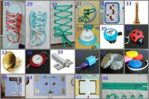 На дъската се поставят предмети, които помагат на детето да се развива в ежедневието.