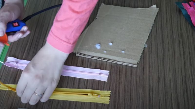 Можете да прикрепите кукла, да изрежете от картон или фибран и елементи от облеклото за куклата, да направите джобове за гребен, огледало.