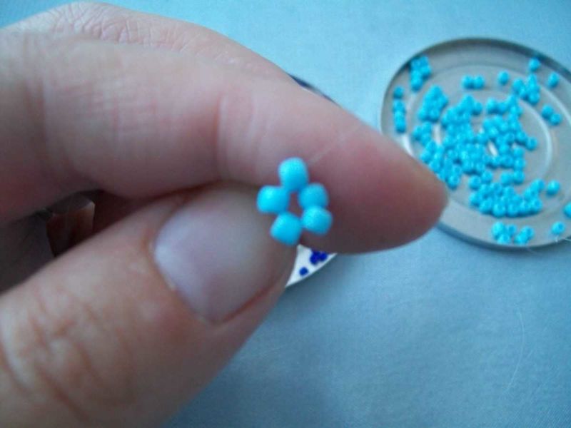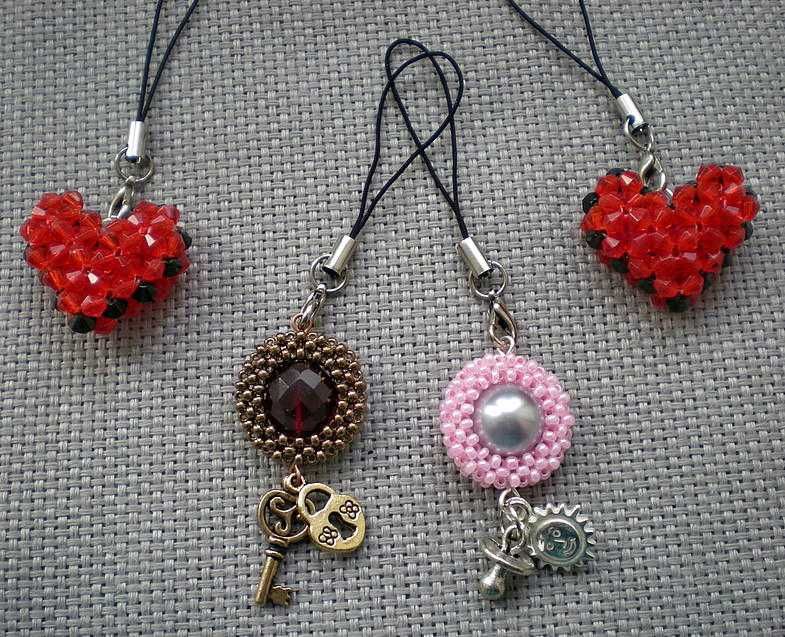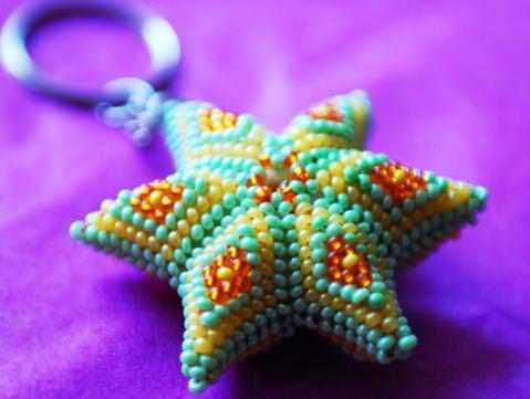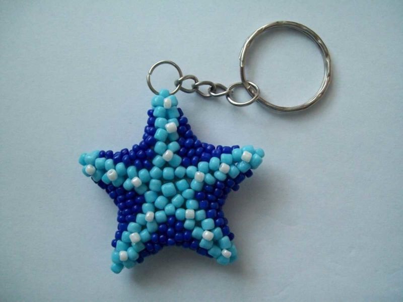 Когато работите с мъниста, трябва да вземете предвид тяхното разнообразие. Най-добре е да изберете шарка от стъклени мъниста, която е създадена от цветен материал, а не е покрита с него, защото в противен случай ключодържателят може да загуби своята жизненост и цвят с течение на времето.