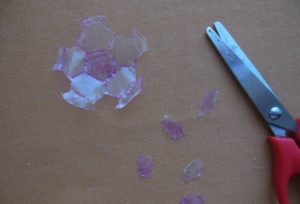 За триизмерния модел препоръчваме да отрежете излишния материал от бутилката и да го поставите върху лист хартия. Закрепете листа с тиксо, очертайте контурите на модела и изрежете заготовката.