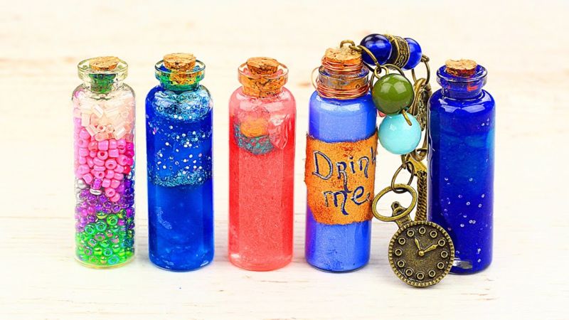 Ключодържател с вода може да бъде доста интересна опция. Можете да го направите от малки пластмасови контейнери, които се продават във всеки магазин за занаяти, или от миниатюрни бутилки.
