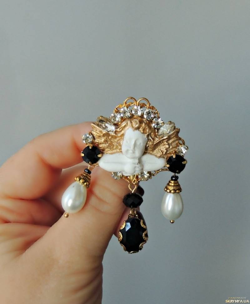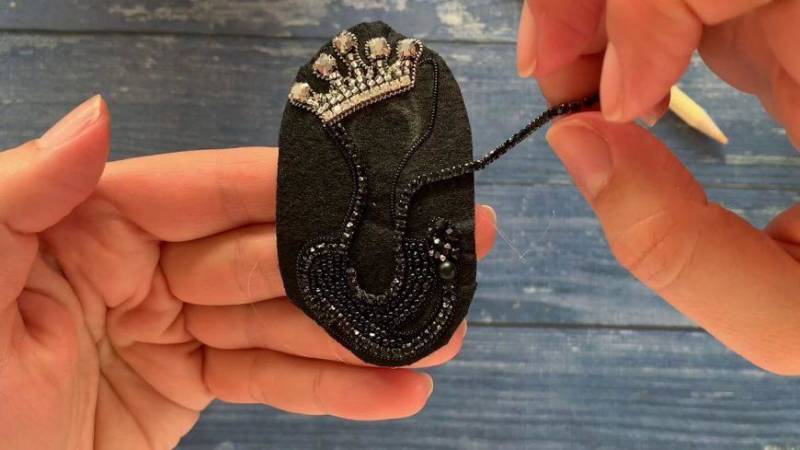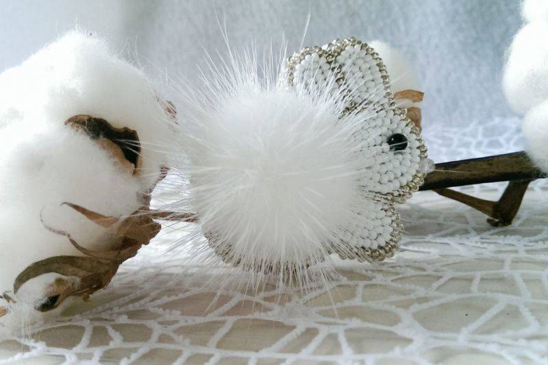 - Мъниста. Придайте обем на брошката, която често се използва като допълнително украшение.
