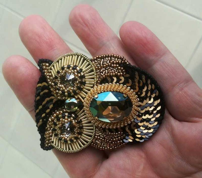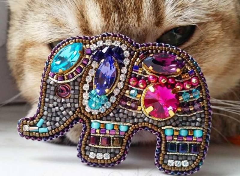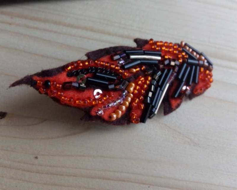 - Смесеното тъкане е интересно и сложно тъкане. Тя се основава на изработката от мъниста върху плат и добавя дизайн, камъни, студен порцелан - всякакви допълнителни елементи. Брошките, изработени с такава техника, се оказват необичайни и много красиви.