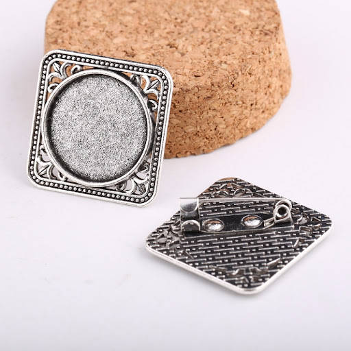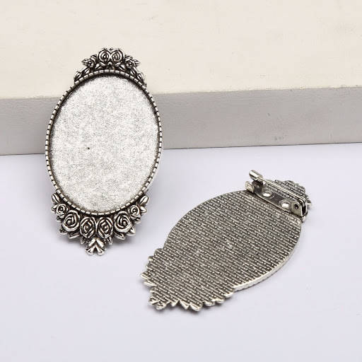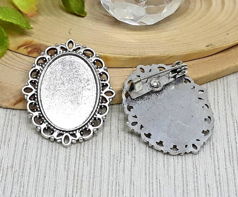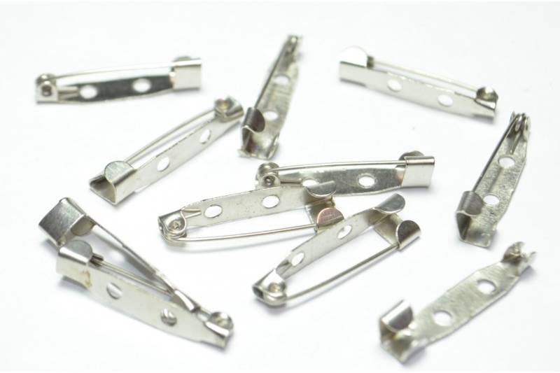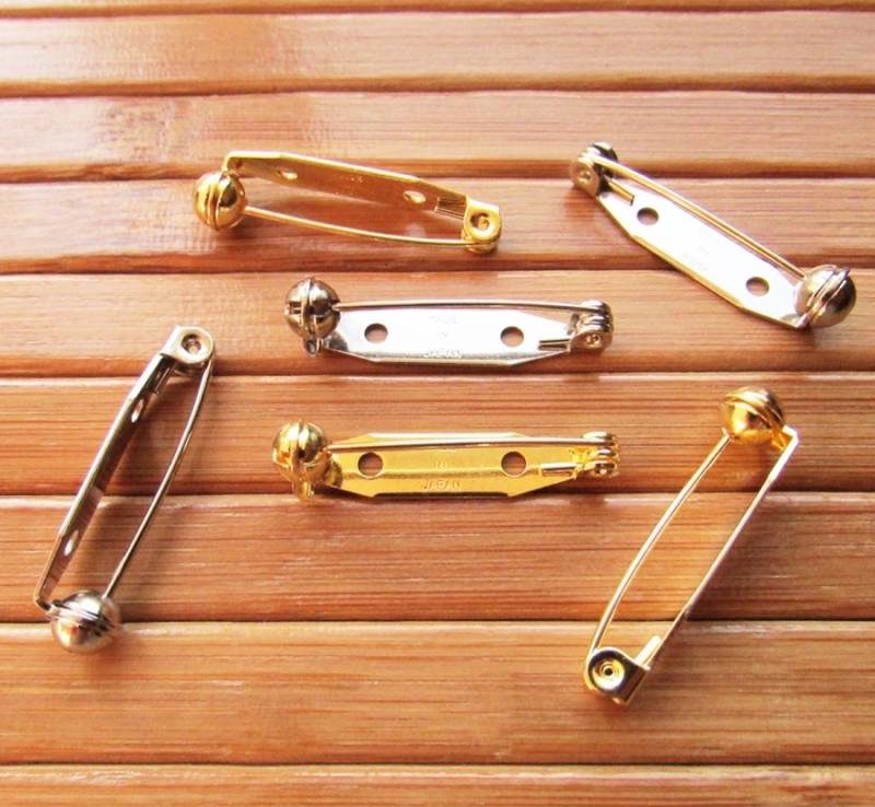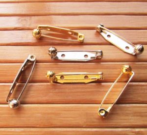 Основа за брошката, под формата на безопасна игла или пластина, за закрепване на готовия аксесоар към дрехата.