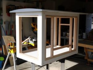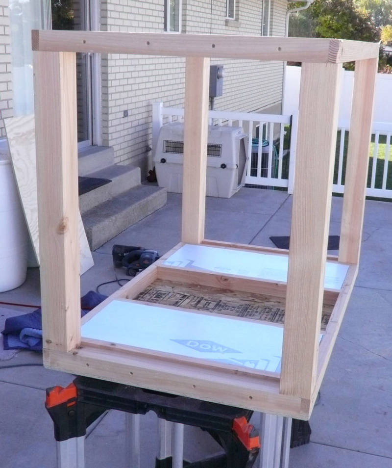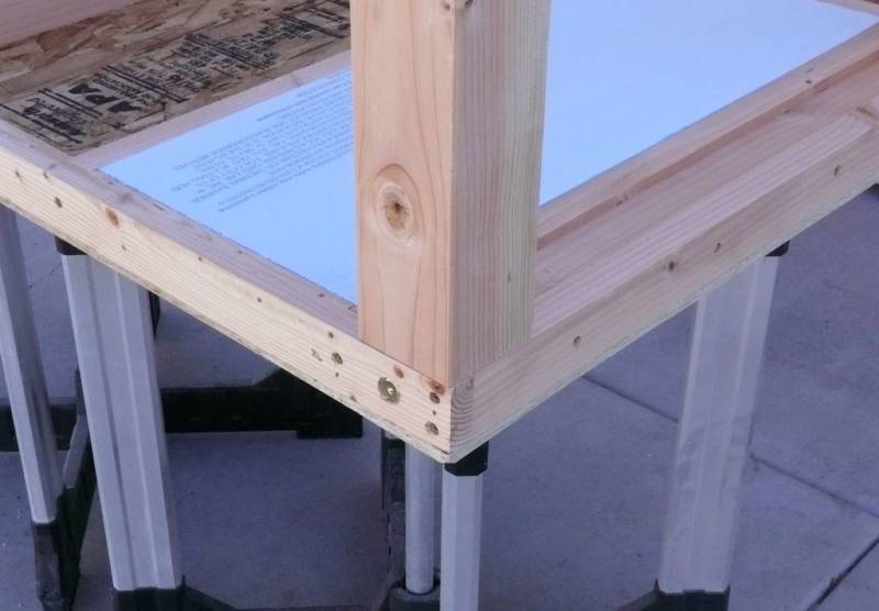 - Първо се сглобява дървената рамка. Подът ще бъде идеален, ако върху него се постави парче шперплат. За да се изолира, дъното на кутията може да се покрие с OSB плоскости или обикновени дъски с изолация отдолу.