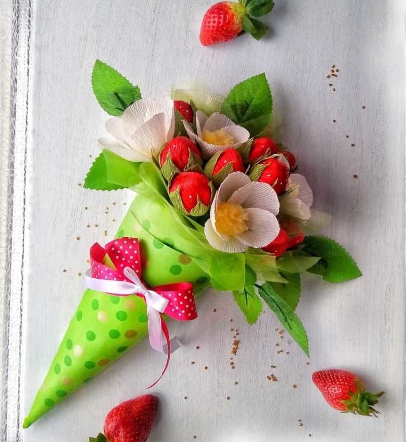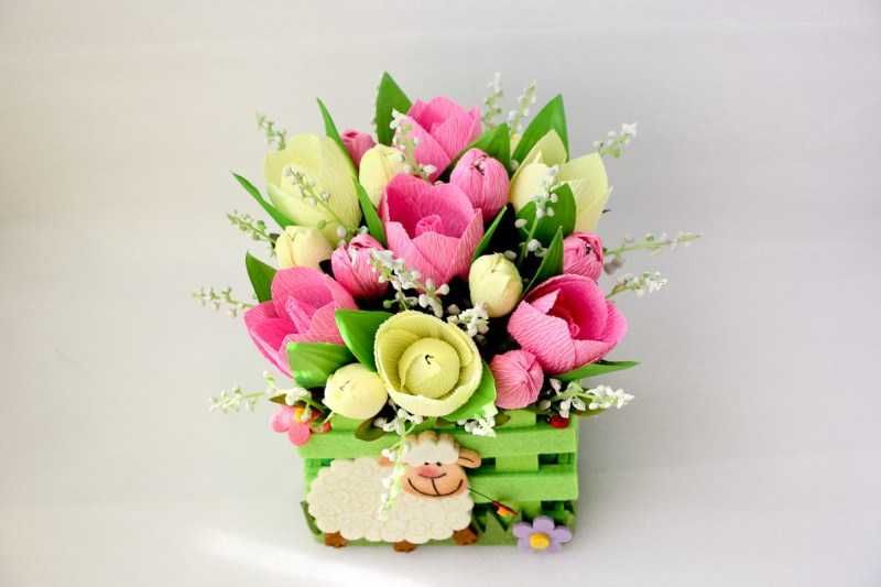 Отлична алтернатива на истинските цветя, особено за пролетния фестивал. Деликатността на пъпките, нежните стъбла и младите листа се съчетават идеално с любимата ви вкусна плънка. Подаръкът, направен със собствените ви ръце, е особено ценен и скъп на сърцето ви.
