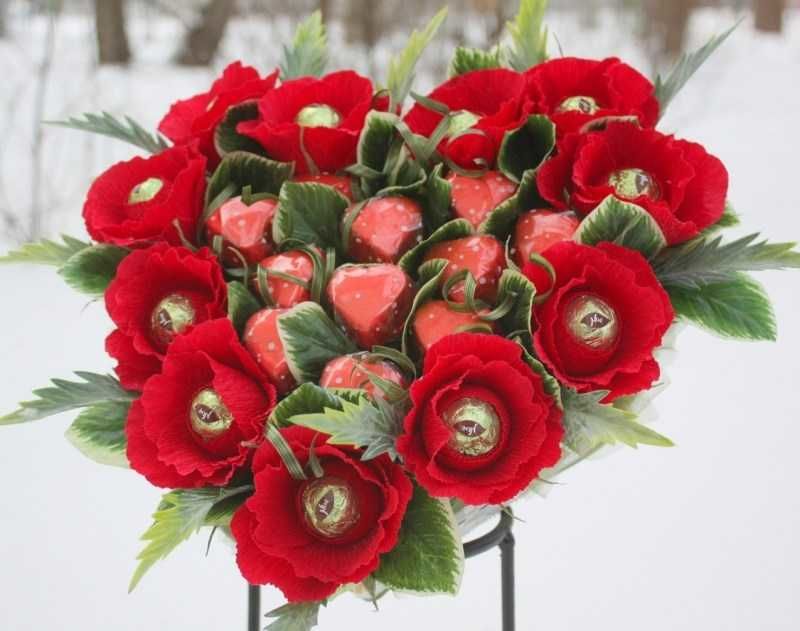 Любителите на сладкото ще оценят най-вече шоколадовите букети. Това е удоволствие, което няма да остави никого безразличен.