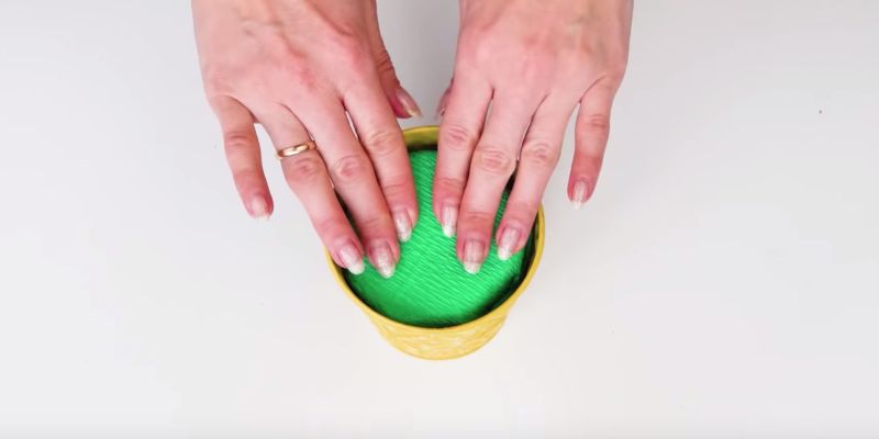- Поставете гъба за цветя на дъното на кошницата и я накиснете във вода.