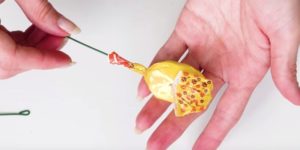 - Всеки опакован бонбон трябва да бъде прикрепен към шишче с конец или тиксо.