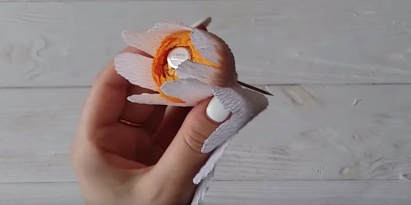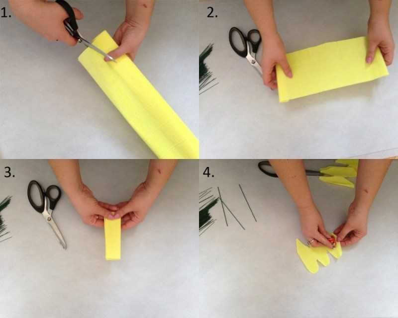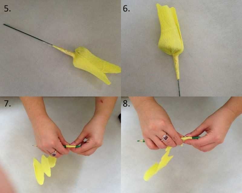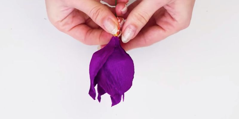 - Изрежете венчелистчетата от плат или хартия и ги залепете за стъблото.
