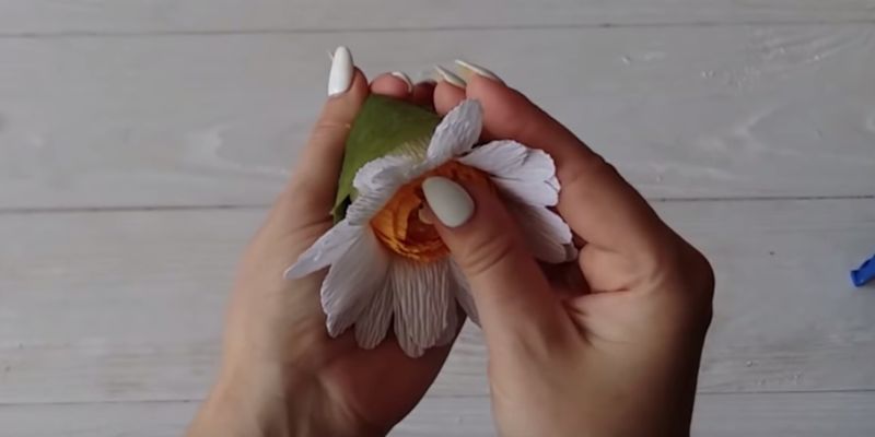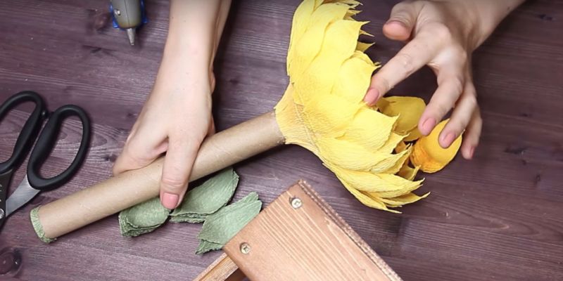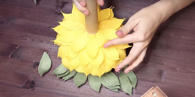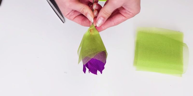 - Увийте зелена хартия около стъблото и направете листа.