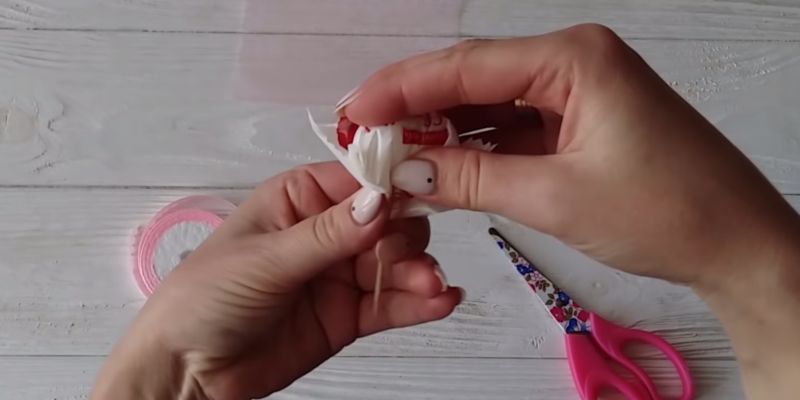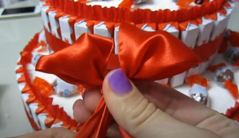- Увийте етажите с панделки и направете панделки.