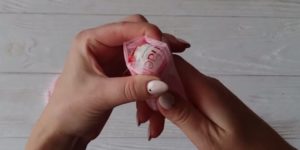 - Създаване на базата. Трюфелът трябва да се увие в хартия, да се постави на шишче и да се закрепи здраво за върха с тиксо. Това ще бъде сърцето на пъпката.
