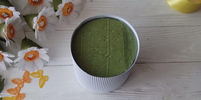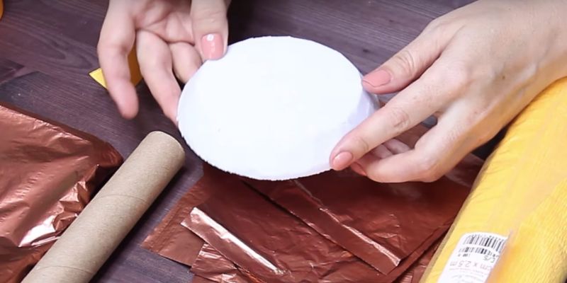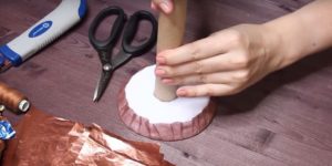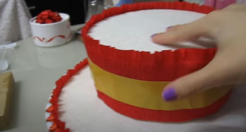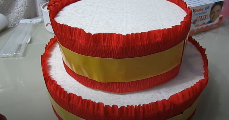 - От дебел стиропор изрежете кръгове с желания диаметър, залепете ги един за друг и ги увийте с цветна хартия.