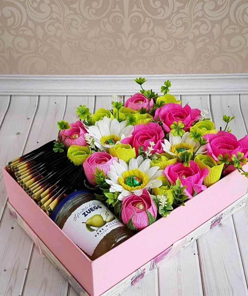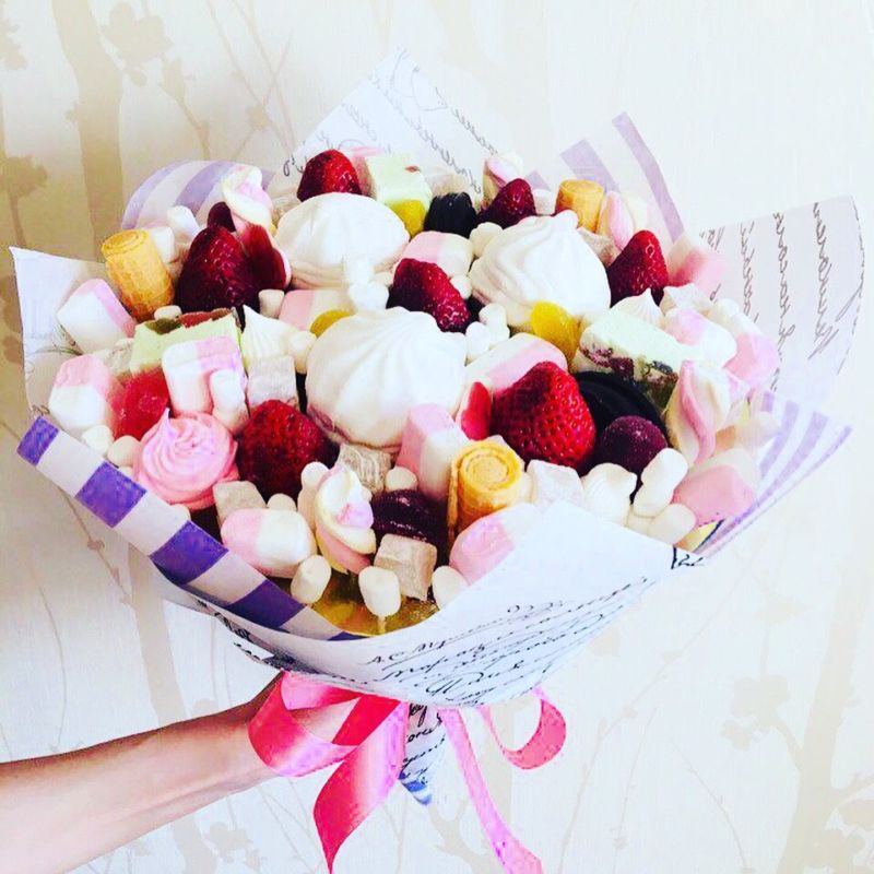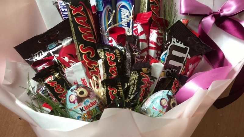 - В един букет могат да се комбинират различни сладкиши.