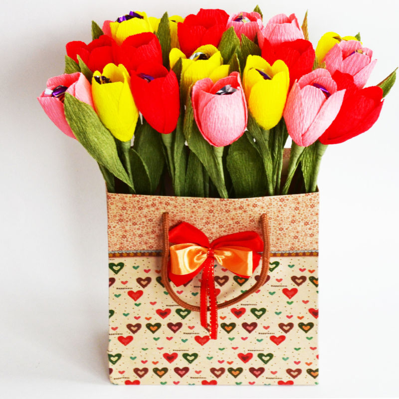 - Направете още няколко лалета от хартия в други цветове.