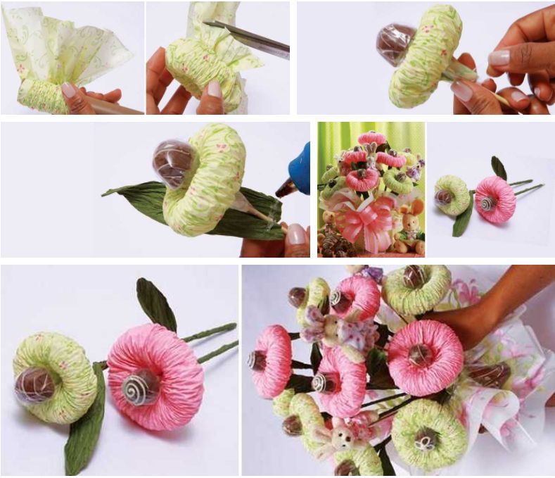 Как да си направим букет от бонбони със собствените си ръце: полезни съвети за начинаещи, фото идеи и примери
