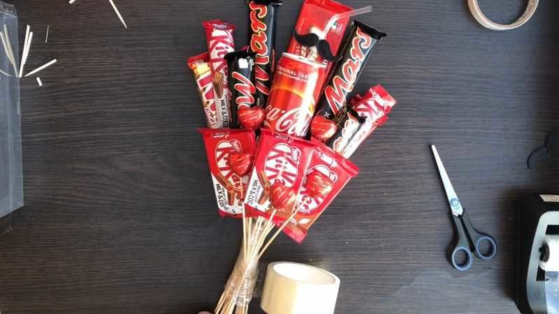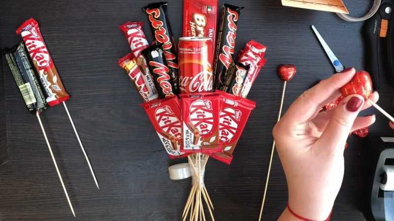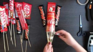 Букет от шоколадови бонбони със собствените си ръце