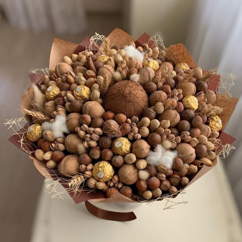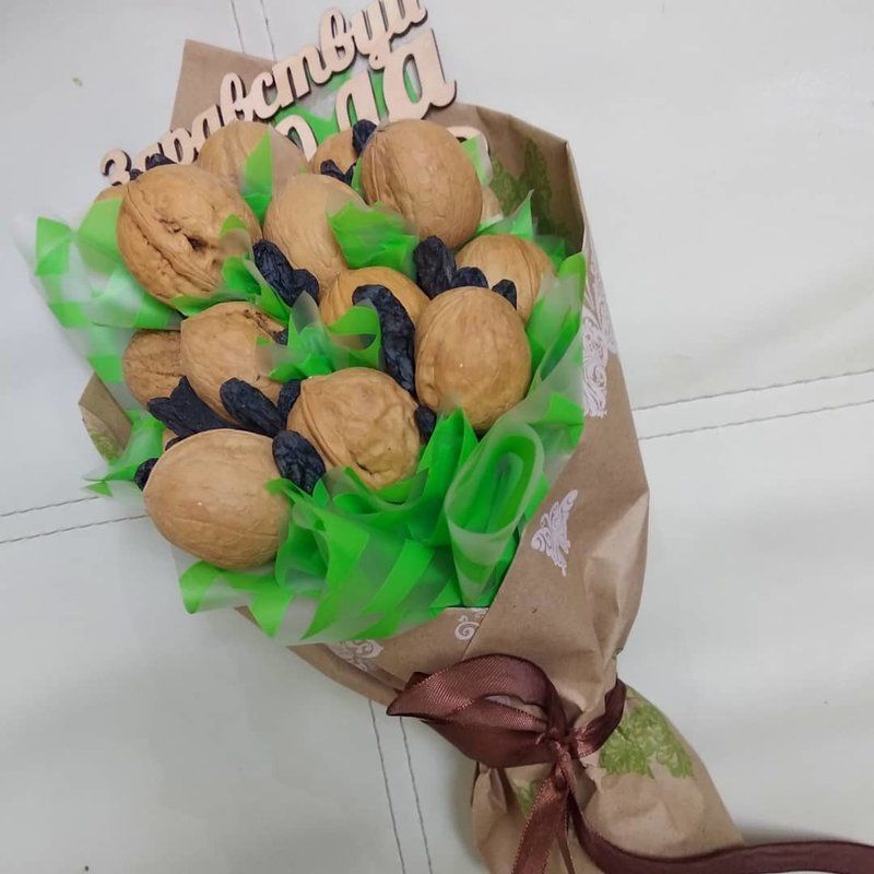 Ядките са много полезни за организма. Букетът от ядки е подходящ за подарък както за мъже, така и за жени.