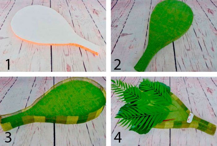 - Получените парчета се скрепват с телбод, за да образуват един букет.