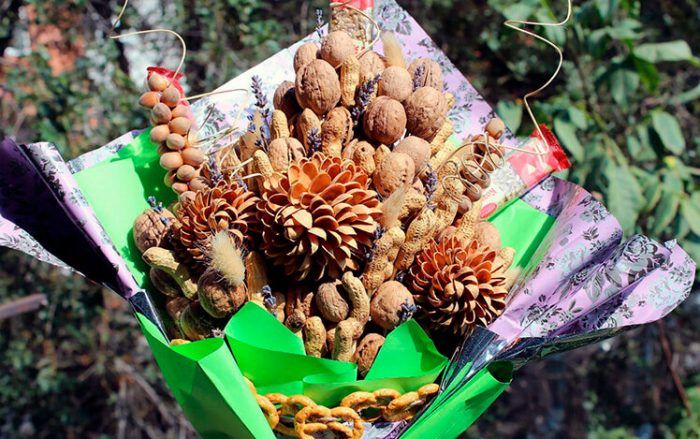 Букети от ядки със собствените си ръце: особеностите на избора на цветове, създаване на букет за жени и мъже