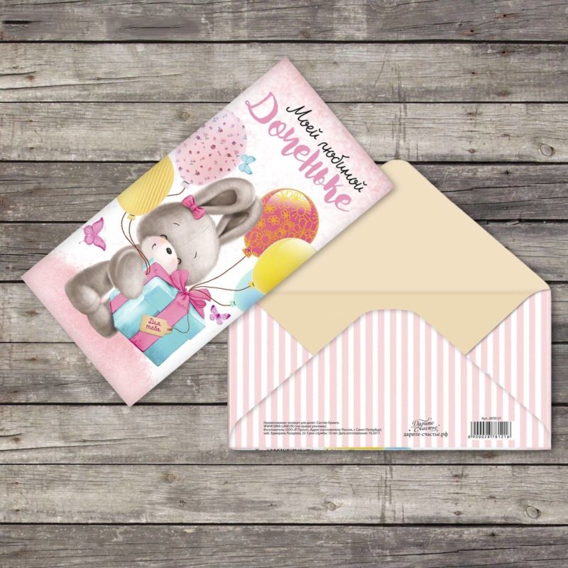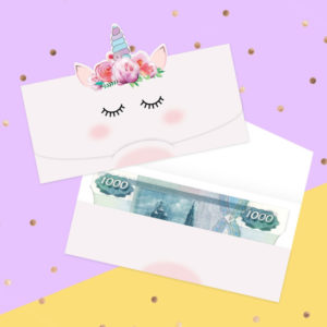 Важно: Пакетът с пари за закупуване на вещи трябва да бъде украсен в детски стил. Подходящ вариант е балон с пари вътре или плюшена играчка с джобче.
