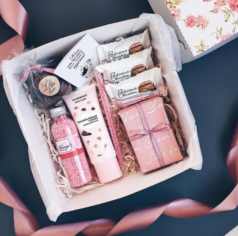 Почерпете рожденичката с различни вкусни лакомства, като например: комплект чай или кафе, комплект шоколадови бонбони, букети от сладкиши, плодове и зеленчуци, подаръчна кошница с продукти, авторска торта.