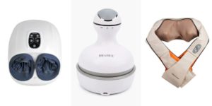 Тези подаръци включват възглавница-масажор, аромалампа, предмети за банята, рафт за книги, калъф за телефон, чанта за стол.