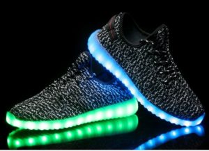 - Светещи маратонки с LED вложки. Светодиодите ще накарат носещия ги да се открои от тълпата, а всичко, което трябва да направите, е да натиснете един бутон.